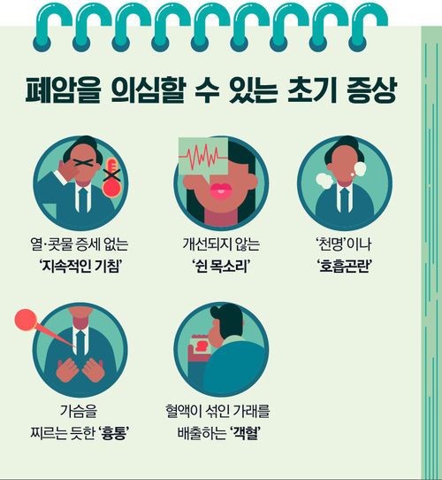 ✔ 초기 증상은 거의 없으나, 기침, 각혈, 가래 변화, 통증, 호흡곤란, 체중 감소 등으로 나타날 수 있습니다.